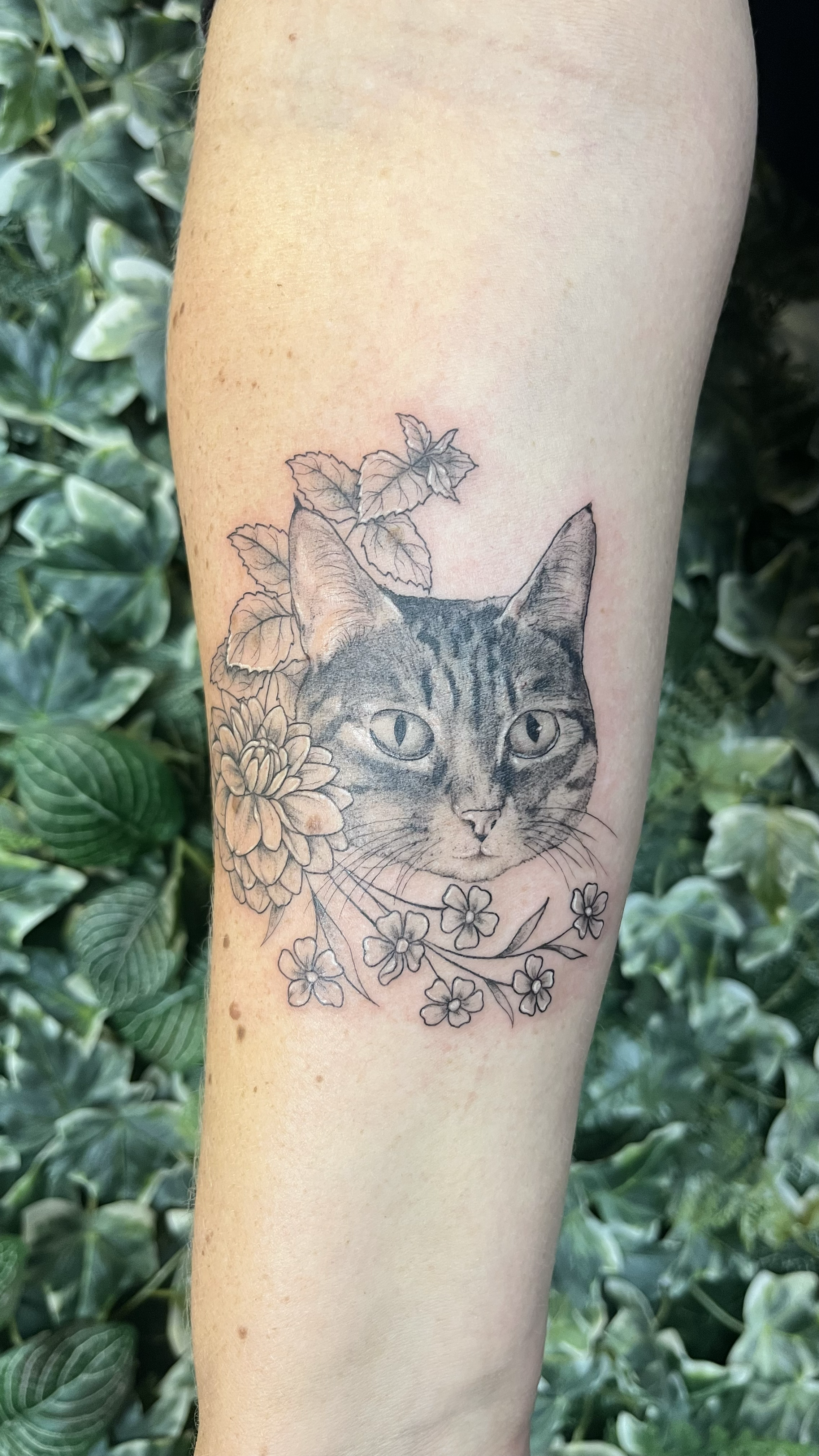 Depending on the darkness, size and placement of the Tattoo that you’re looking to get covered — you may need to have colour in the Tattoo to fully cover it or have high contrast black and grey areas (sometimes fully black and grey coverups aren’t doable). The coverup needs to be bigger than your old Tattoo. I recommend a design with lots of lines and/or colour (ex. Flowers, greenery, Galaxies/Nebulas, landscapes, etc.) in order to distract from what’s underneath.